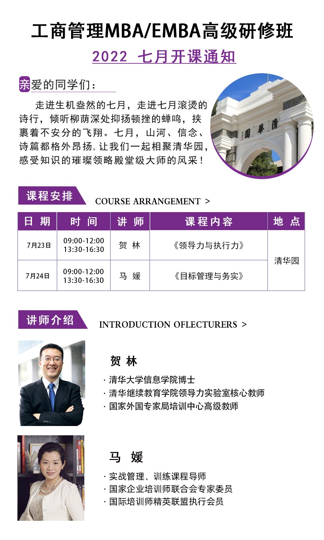 2022年7月清大工商管理MBA/EMBA總裁班開課通知